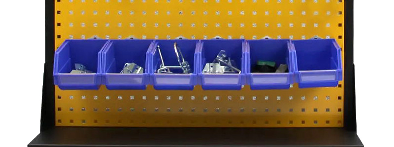 背挂式零件盒特有的隔片可分割零件盒内部空间,再配合标签使用,拣选物料更为简便。且可与物料整理架、工作桌、多层小推车、墙用挂板配合使用,会更加方便。